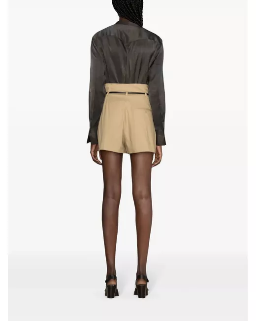 dark grey/beige silk blend satin finish abstract pattern print spread collar front button fastening drop shoulder long sleeves buttoned cuffs short side slits high-low hem