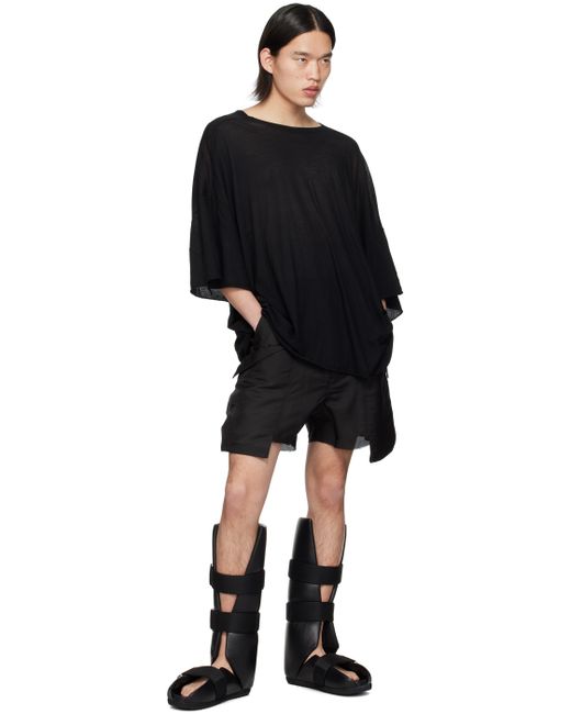 Padded buffed leather sandals in black. · Velcro webbing straps throughout · Cutout at vamp and sides · Molded leather footbed · Grained calfskin lining · Treaded rubber sole Supplier color: Black/Black