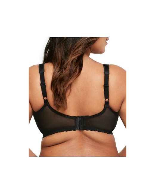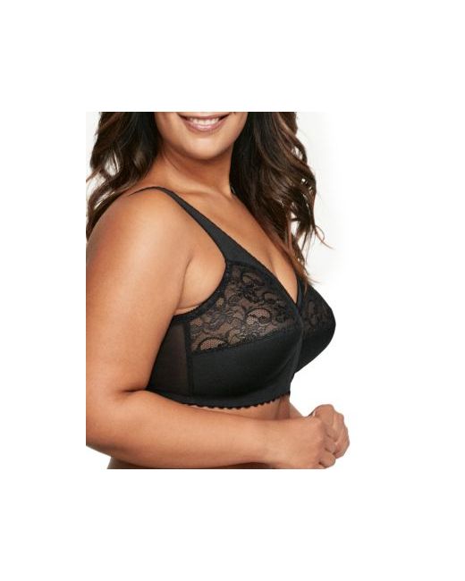 You will love the great fit you get when you wear this beautiful Glamorise. The secret is support band that crosses under and over for superior comfort and support without a wire. Beautiful lace covers the upper cups. The mesh fabric used in the sides and back of the bra stretches with your body.
