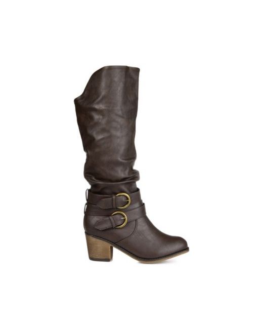 Step into trend-setting style with these buckle boots by Journee Collection. These fashionable boots feature premium faux leather uppers that rise mid-calf with slightly raised angular vamps in the front.