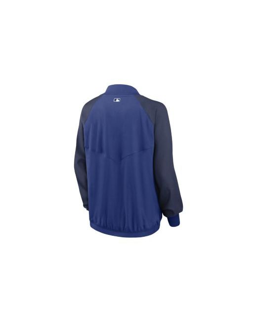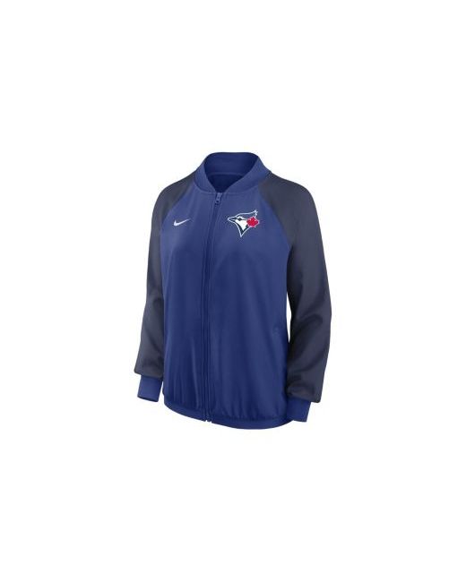 Ready your selection of Toronto Blue Jays apparel for changing weather conditions with the versatility of this Authentic Collection full-zip jacket from Nike. It's designed to help you stay comfortable on cooler Toronto Blue Jays game days with sweat-wicking Dri-fit technology and soft polyester twill material. Raglan sleeves also provide coverage without a bulky fit at the shoulders, and two-way stretch fabric delivers extra flexibility.