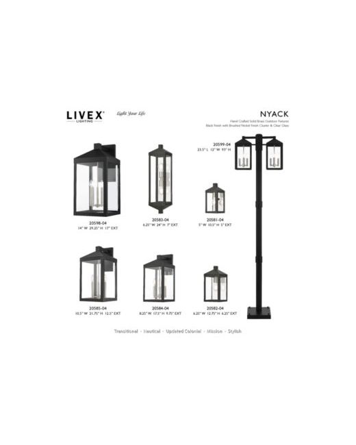 The dramatically simple shape and bold lines help define our Nyack wall lantern. Featured in a black finish with brushed nickel accents, this outdoor wall lantern has panels of clear glass.