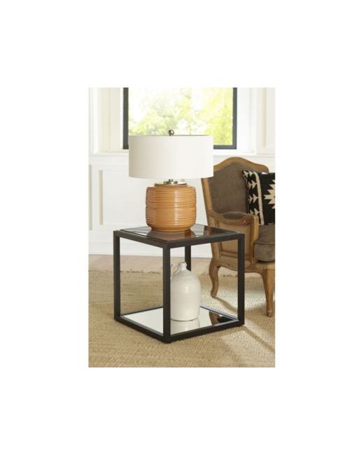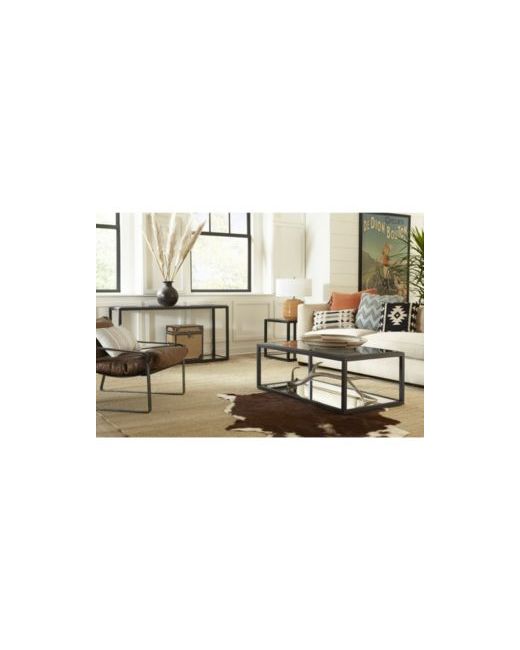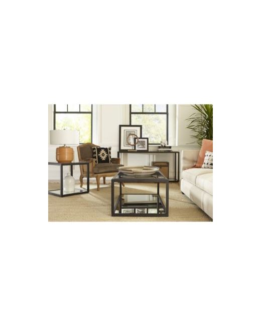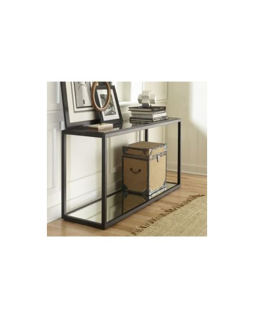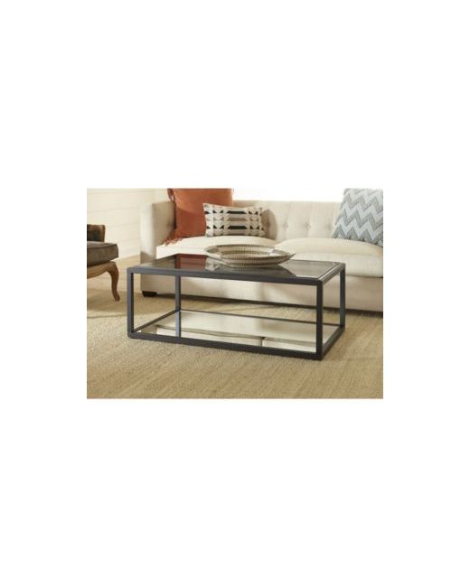 Journey into the world of industrial modern with the Ellis collection by Modus Furniture. Panes of smoked glass are set flush with a raised gunmetal frame for a subtle step effect while a black metal base and mirrored shelf provide subtle contrast. Complementary materials and color tones result in a nuanced but monochromatic look versatile enough to make its home in any living space.