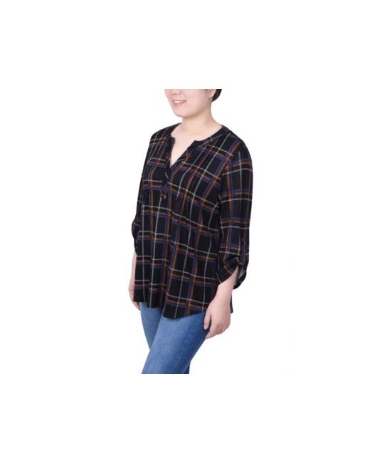 With front pintucks and Y-neckline, this roll tab top from Ny Collection is flattering on any body type and can be perfectly dressed up or down.