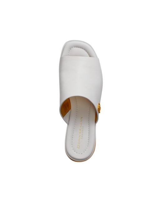 Emphasizing curving lines and peep-toe design, these Tinley mules boast metallic heels for bonus shine.