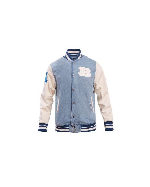 Showcase your Cincinnati Bengals pride in vintage-like style with this Varsity Blues varsity jacket from Pro Standard. Its full-snap design features the Cincinnati Bengals logo and name stitched on denim fabric and contrasting linen sleeves. Traditional stripe trim perfectly complements the team graphics and mixed materials.