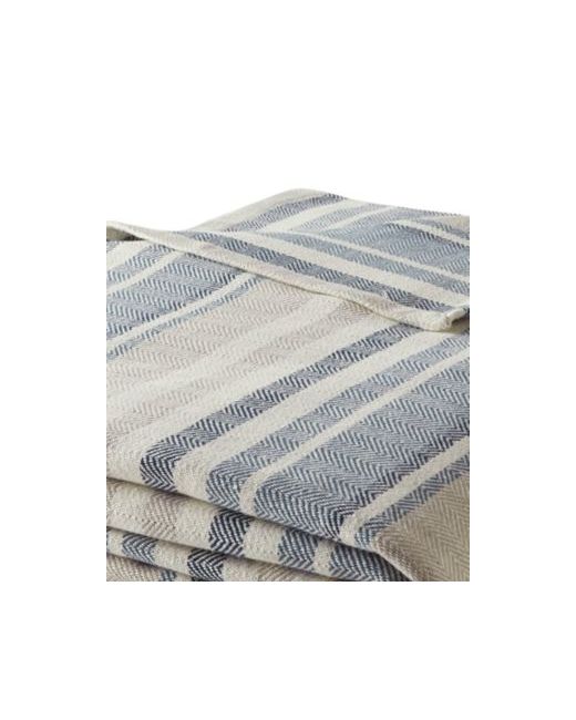This Comfortable, Yarn-Dye Stripe Woven Blanket Is Given Additional Interest With A Herringbone Texture Woven Throughout. This Sporty Stripe Is Offered In Blue, Mixing Denim And Chambray Tones With Stone And Ivory. This Cozy Blanket Will Add A Touch Of Style To Any Room In Your Home.