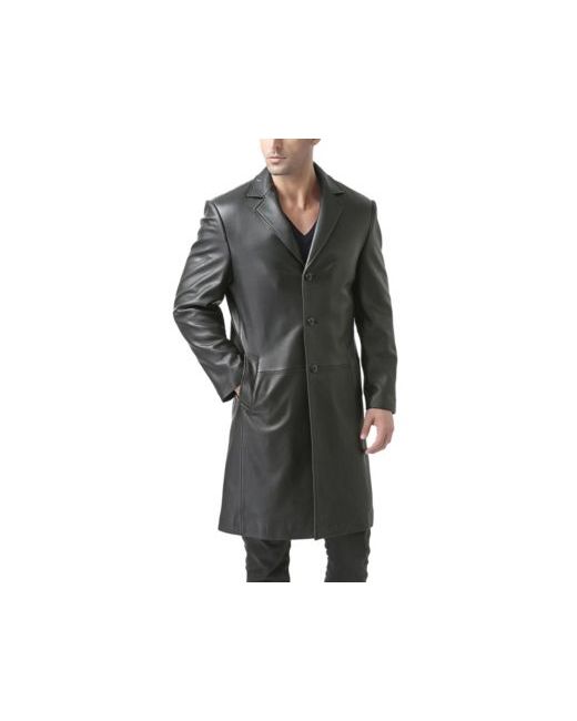 This handsome, single-breasted leather walking coat features notch collar, natural shoulders and easy angled hand pockets in soft, smooth leather.
