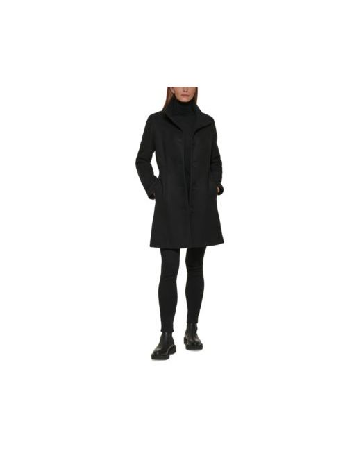 Well dressed! This single-breasted Calvin Klein walker coat is a petite pick designed with a classic stand collar.