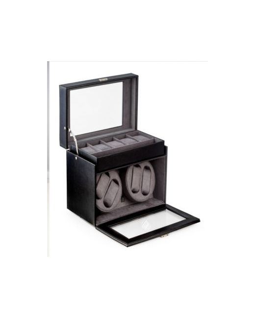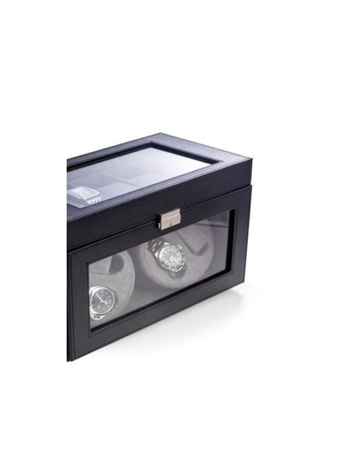 A quality watch winder with the ability to wind 4 watches, display 10 watches in a leather wrapped glass top case. Capable of winding 4300 rotations per day.