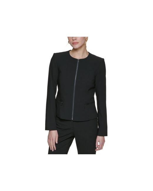 Create endless ensembles with this collarless blazer from Calvin Klein, a sleek addition to your career collection designed with a front zipper and two convenient pockets.