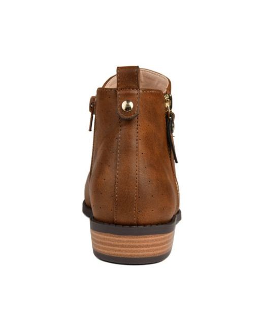 Ellis is the cutest new addition to the bootie family. This bootie features an inside zipper with an outer decorative zipper detail with a distressed coloring throughout and a pinhole texture on the heel. The low block heel complete this design.
