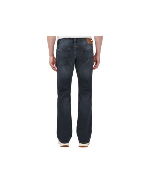 Super stretch jeans featuring a crinkled and sanded dark wash. Regular rise with a straight fit at the leg that flares at the hem. The Buffalo rivet at the back pocket adds subtle detailing. Part of our authentic collection.