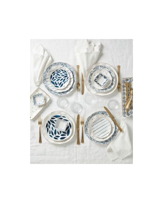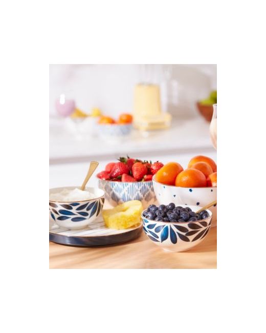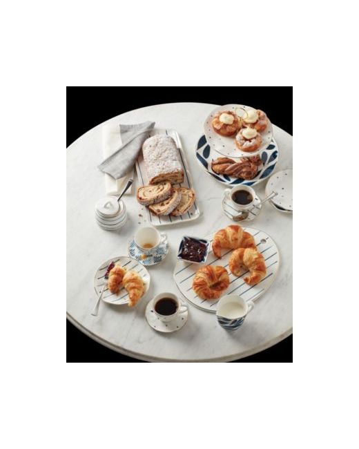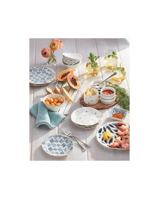 Blue Bay is a dessert story with a great hand-thrown pottery feel. This collection is made up of 4 whimsical, eclectic blue and white patterns that play perfectly together in assorted sets of four: Tid-bit plates, dessert plates, mugs, espresso cups/saucers, all-purpose bowls and dessert bowls. Layered in is a Teapot, sugar and creamer set and various trays to accommodate all of your entertaining needs. We incorporated wood for warmth and that artisan quality, plus a glimmer of microwave safe gold for everyday performance and presentation.
