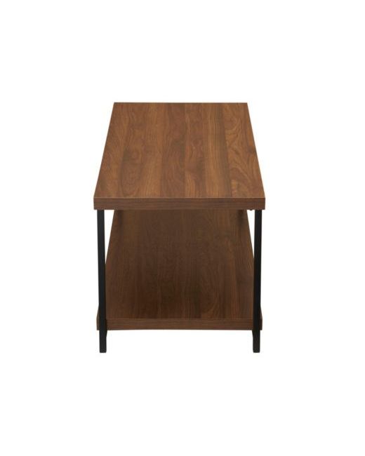 The Household Essentials Mid-Century Walnut Collection presents a low-profile, modern solution for any room with this wide light brown coffee table. The extra storage shelf below offers added space. This chic coffee table is easy to put together with minimal effort and has a minimalist profile.