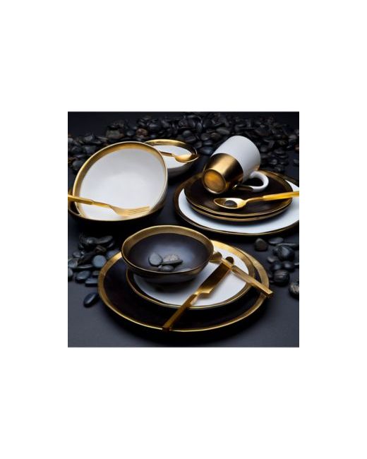 Sleek contemporary simplicity combines with regal gold-tone banding to create a handsome tablescape with this four-piece Godinger Terre D'Or place setting.