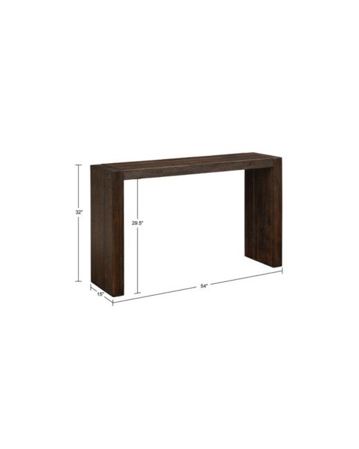 Modern clean lines and a simple design are beautifully combined to create this console table. This piece of multifunctional furniture features a solid wood construction in a deep finish with distressing details for a charming modern look. Some color variations will occur in the natural wood grain, making this narrow console table unique in design to elevate your decor. Use as a console table in your living room or entryway or as a counter table in your kitchen or other small spaces to give your home a handsome contemporary update.