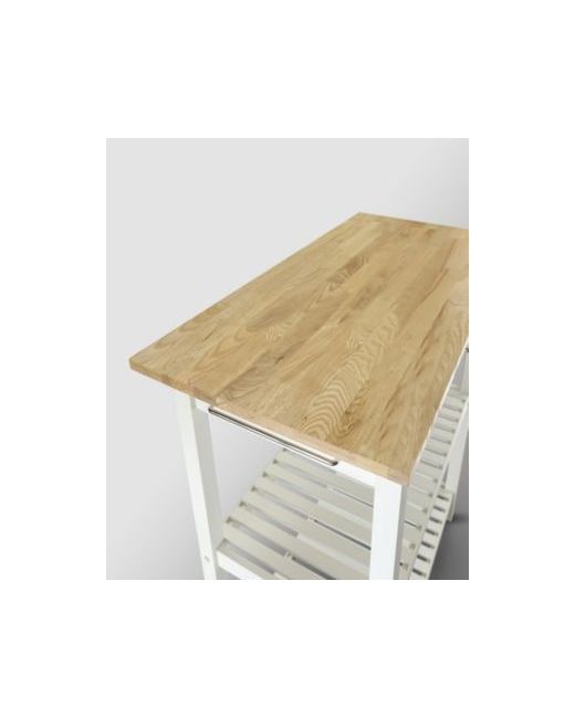 This Kitchen Island cart is the perfect addition to any kitchen that could use some extra counterspace. Its details are manifested in the beautiful finish of the solid wood. 2 shelves and a drawer provide multiple ways to keep your kitchen organized and all of your cooking essentials close at hand.