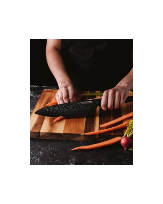 The Cuisine::pro iD3 Black Samurai Chefs knife (20 cm or 8") is traditionally known as a cooks knife. It is an all-purpose knife that is curved to allow the cook to rock the knife on the cutting board for a more precise cut.