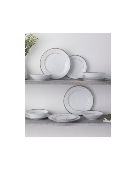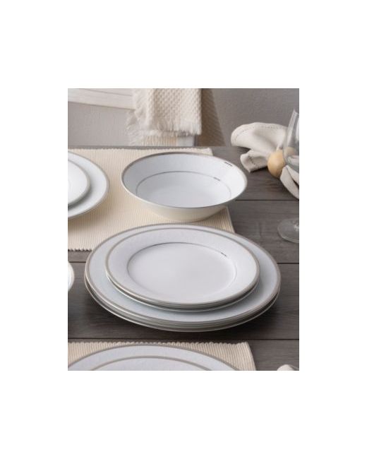 Regina platinum features a white-on-white, raised enamel, scroll-like design edged in etched platinum for a simple, classic look. Crafted in white porcelain, Regina platinum offers traditional place setting components, additional items, and a wide selection of serving pieces.