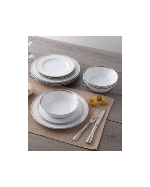 Whiteridge Platinum features multiple design elements. Items crafted in white porcelain feature ultrafine white-on-white raised ridges, which on selected items are alternated with a light grey. The wide outer platinum band is etched with waves flowing around the edge of each piece.
