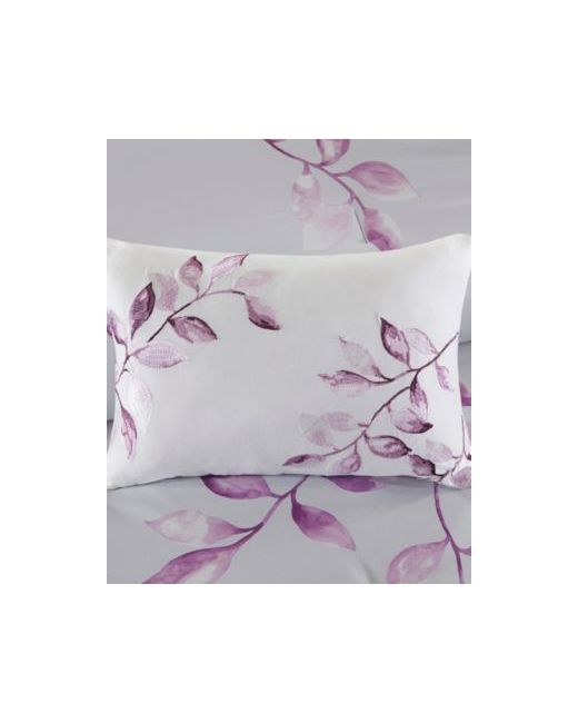 Add sophisticated fashion to any room with the Essentials Lafael comforter set from Madison Park. The comforter showcases purple and gray floral leaves wafting gracefully toward the foot of the bed, atop a white ground that reverses to a solid purple. The coordinating shams and an embroidered decorative pillow accentuate the floral motif and give this complete set extra charm. A purple and white sheet set, and a purple bedskirt, harmonize beautifully with the rest of the ensemble, completing the look.
