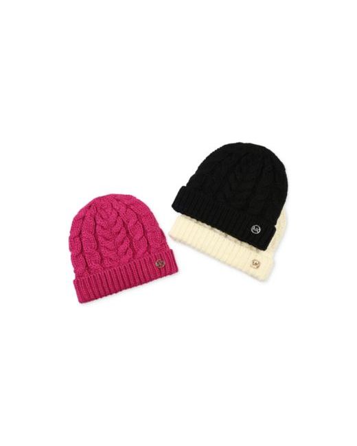 Keep cozy this season in this cable-knit hat from Michael Michael Kors, fashioned with a tiny logo charm on the cuff.
