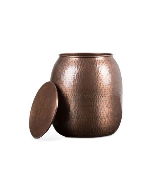 Hand-hammered detail and an antiqued-copper finish give this metal storage accent table its chic vibe. The top comes off to reveal extra storage that is ideal to keep you organized in your family room, bedroom or anywhere you need some functional style.