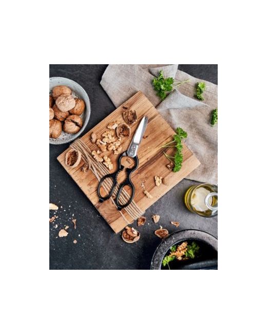 Handy, all-in-one tool for the kitchen and throughout the household. You'll find yourself reaching for these heavy-duty, German-made shears for so many jobs in the kitchen. Snip fresh herbs and trim poultry with the razor-sharp stainless-steel blades, twist open bottles and crack walnuts with the built-in bottle opener, and lift lids and open containers with the lid opener. Made from special-formula stainless steel, these corrosion-resistant blades boast safe, long-lasting sharpness. Thanks to their handy micro-serrated edge, the blades never need to be sharpened. Zwilling's signature ice hardening technique offers superior corrosion resistance, ensures the blades will not stain or chip, and increases durability so you can enjoy these shears for longer.
