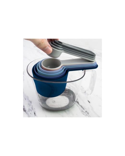 Never search for lost measuring cups and spoons again with the Magnetic Nested Measuring System from Tovolo. This complete set stacks neatly within itself for compact storage. Etched, easy to read markings will not fade over time. Dry measuring cup set includes 1/4 tsp, 1/2 tsp, 1 tsp, 1 Tbsp, 2 Tbsp, 1/4 cup, 1/3 cup, 1/2 cup, 1 cup and 3 cup measuring pieces. Measuring set is perfect for baking beginners or housewarming gifts. Made of Bpa-free plastic with embedded magnets. Do not place measuring cups in microwave.