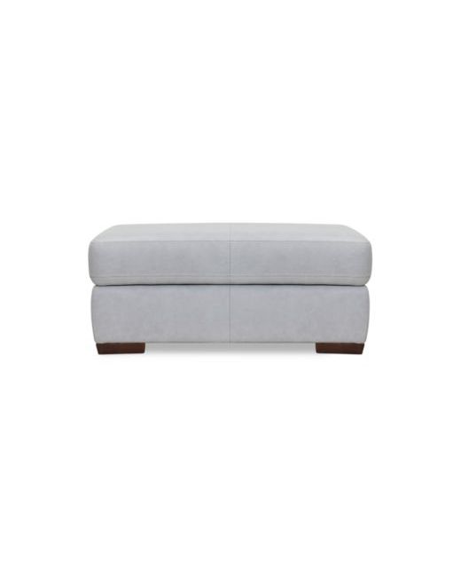 A whimsy color, a wondrous feel, what's not to love on this ottoman. With traditional lines and a supportive cushion draped in smooth top grain leather, and rendered in a soothing pastel-tone, it offers to elevate the appeal of your favorite space with both a beautiful look and luxurious comfort. Its flip-top lid adds to its functionality, providing storage perfect for blankets and pillows.