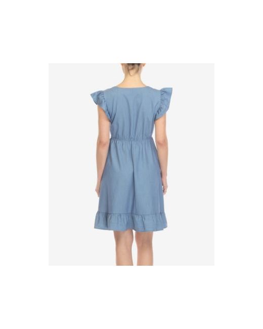 Your new favorite dress this season is here. This chambray dress features a flattering and comfortable babydoll fit on a relaxing cut. The flutter sleeves and the V-neck add a very feminine touch that is easy to dress up or down. It also features a button front, elastic waistline and ruffled hem.