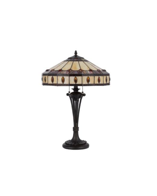Add a pop of color with this striking colored glass floor lamp. It features a patterned hand painted tiffany glass shade with a torch lamp body. It has a circular weighted base for added stability.