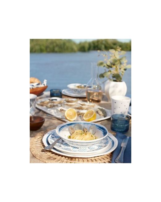 Organic shapes and artisanal designs merge flawlessly on this Blue Bay set. Made from hardworking melamine, the lightweight pieces stand up to kids, poolside parties, and daily duty with carefree ease befitting boho style.