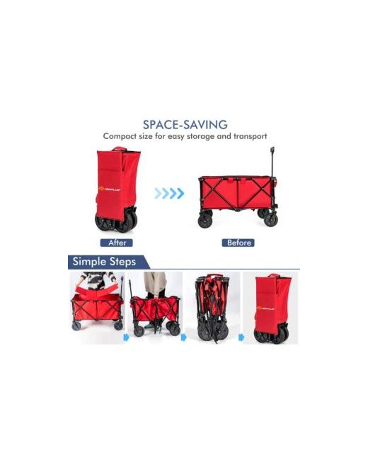 Compared with folding wagons of standard size, our collapsible utility cart is much deeper in storage space, which allows you to hold long items without falling off. In order to better suit your needs, our collapsible wagon with strong weight capacity can hold up to 180lbs without deformation.