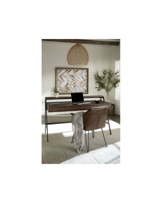 Contemporary and casual, the Finch collection combines modern forms, subtle design cues and unique configurations to create a bold but familiar look. A-frame styled bases are fabricated from tubular steel and finished in a smooth matte black powder coat. Wood components consist of quartered and flat cut oak veneers with beveled solid wood moldings. Our proprietary 8 step finish uses wire brushing, glaze, cow tailing and a light wash to create the rich layered look on the finished product.