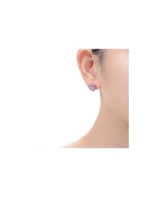 Add a touch of charm to your ears with these delightful heart stud butterfly earrings, crafted in sterling silver and elegantly plated in 18K rose gold, featuring sparkling pink cubic zirconia