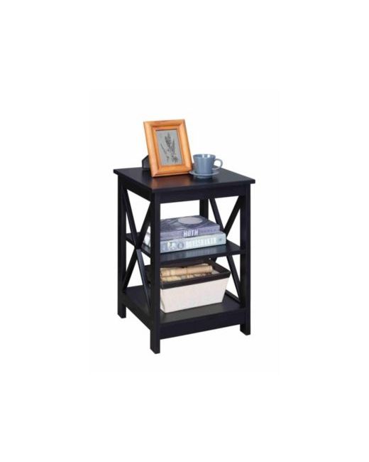 The beautiful bold X frame panel sides of the Oxford end table makes a statement in any room. Featuring a spacious tabletop, middle and bottom shelf, this accent table provides plenty of space for display and storage. Made of manufactured wood and non-lead-based paint.