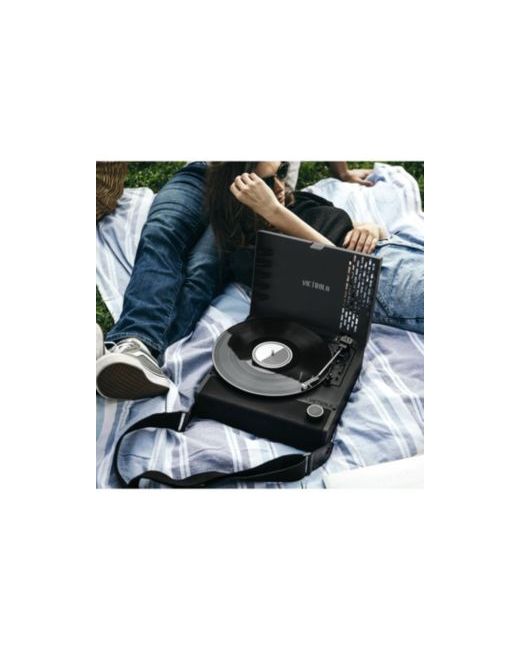 The Victrola revolution go is the world's first portable, rechargeable record player. Featuring a rechargeable battery for up to 12 hours of playback, and a 3-speed turntable, as well as bluetooth technology with vinyl stream, so you can stream music to any external bluetooth speaker.