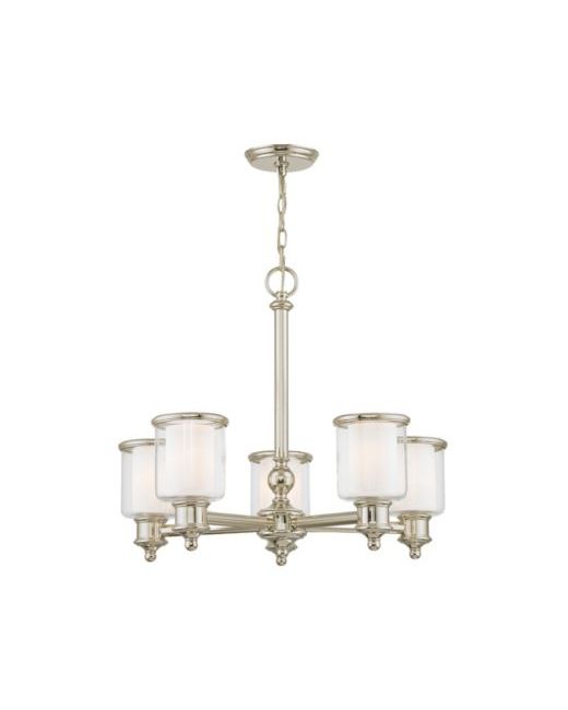 Striking and elegant, the Middlebush Light chandelier from Livex offers a modern twist on traditional lighting. Rounded arms in a polished nickel-tone finish support five lights ensconced by hand-crafted, avant-garde double shades.
