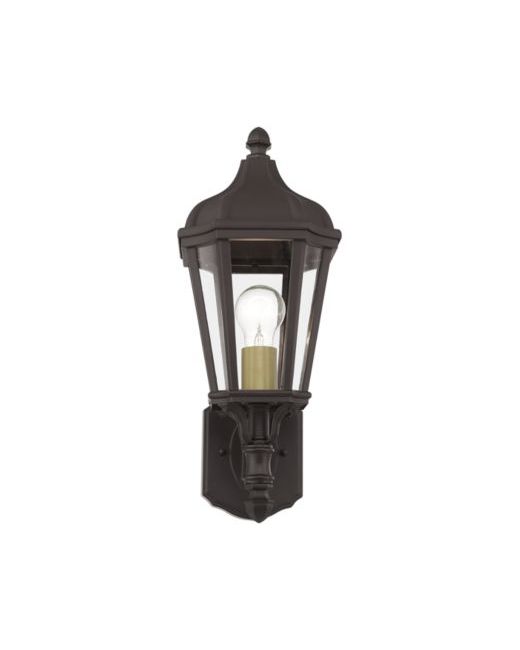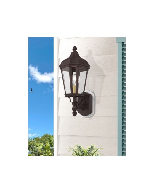 With clear glass and a classic bronze finish, this outdoor wall lantern from the Morgan collection is an elegant way to illuminate traditional exteriors.