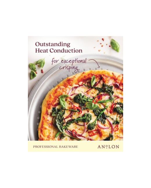 Make the crispiest thin crust pizzas, flat bread, calzones and more with this perforated round pizza pan from Anolon pro-bake professional bakeware. This perforated pizza pan is constructed from uncoated aluminized steel for unmatched durability. Oven safe to a 550 degree Fahrenheit.This product contains (Este producto contiene) Aluminum. For more information on chemicals in this product, visit (Para obtener mas informacion sobre productos quimicos en este producto, visite) https://anolon.com/pages/product-disclosures.