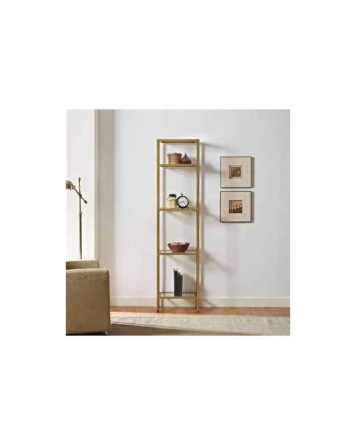 Crosley furniture creates a refreshing update to the classic bookcase with the Aimee narrow etagere. This easy-to-assemble wall unit features tempered glass shelves and a sturdy steel frame finished in an elegant antique gold.