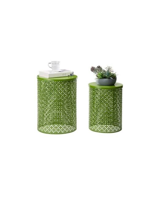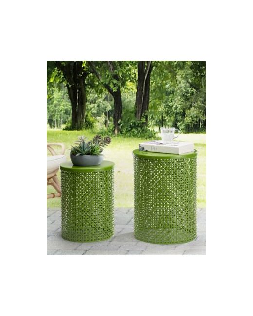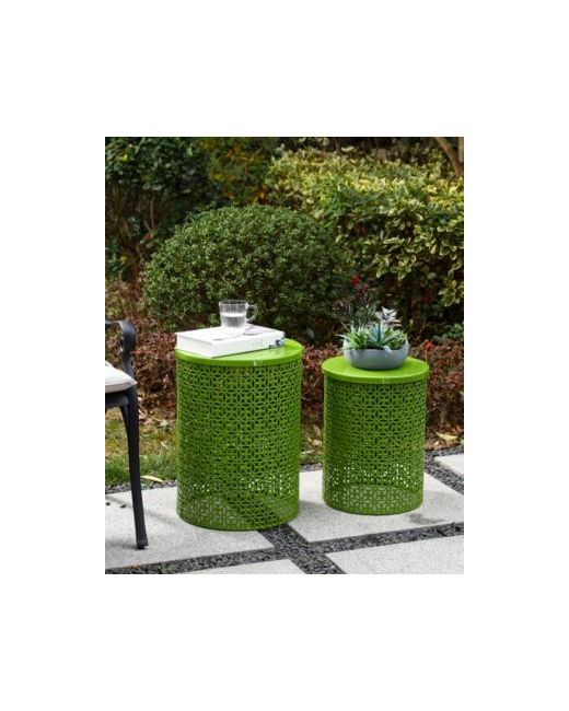Green Multi-Functional Metal Garden Stool or Plant Stand Accent Table Set of 2