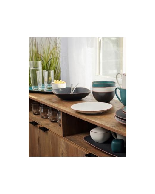 Inspired by the topography and architecture of New Mexico, Taos combines clean lines with a bold color palette. Each piece in the collection is finished with an adobe-colored rim and a speckled, reactive glaze. This beautiful stoneware dinner collection stands on its own or can be mixed or matched for casual dining. Included in the Taos 16 piece set are 4 dinner plates, 4 accent salad plates, 4 soup or cereal bowls, 4 and mugs.
