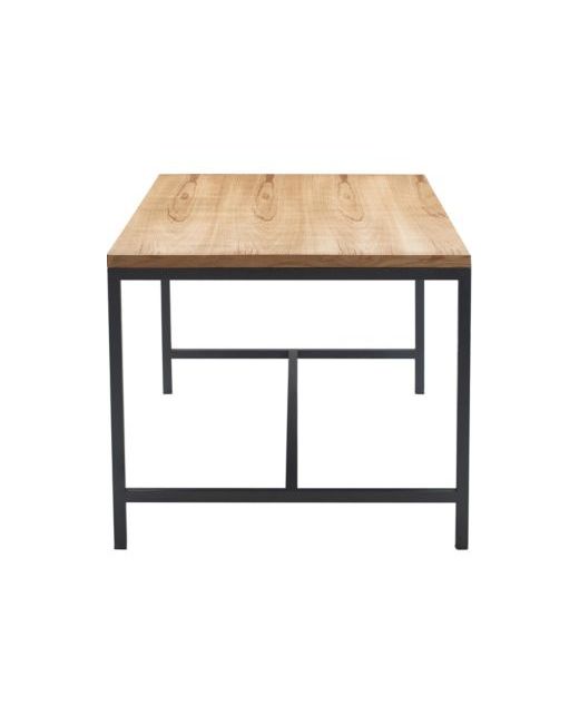 Bring home a dose of welcoming industrial style with this modern dining table from iconic American designer Finch. A generously sized, solid wood tabletop is made in a light-toned oak finish, and black metal creates a strong, stylish frame and legs. Charming wood grains on the surface add a bit of rustic charm to this dining room furniture. The combination of simple, quality materials creates a stylish spot you'll love returning to again and again, whether for everyday dinners, holiday feasts, game night or craft projects.
