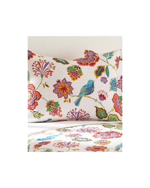 The Levtex Home Abigail Birdcage Pillow includes a duck feather insert with a decorative pillow 18" x 18" in multi colors. Bring the colors of spring to your bedroom with the Abigail collection featuring blue birds on a bright jacobean floral pattern.