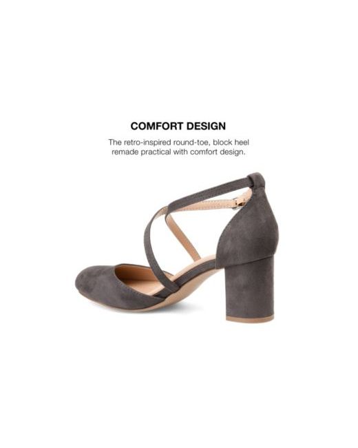 Step into a classic style with the Foster by Journee Collection. This heel features crisscross straps, an almond toe, and a heel height that will fit you perfectly.