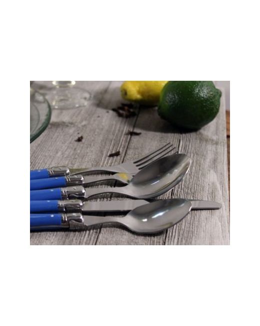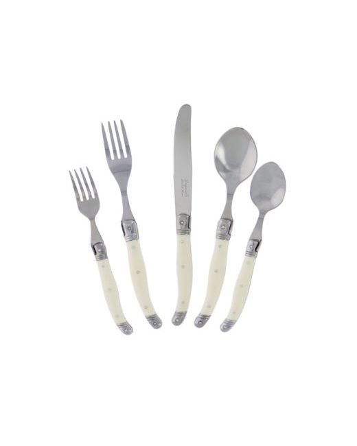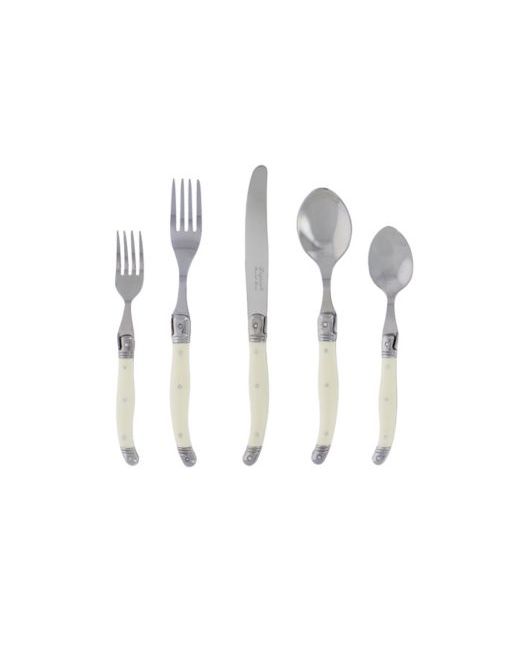 Distinctive resin handles showcase the beauty and superior craftsmanship of this Laguiole 20-piece flatware set by French Home. Ideal for both casual and formal dining, each perfectly-balanced stainless steel piece is fully tanged, triple riveted and accented with the iconic bee emblem.