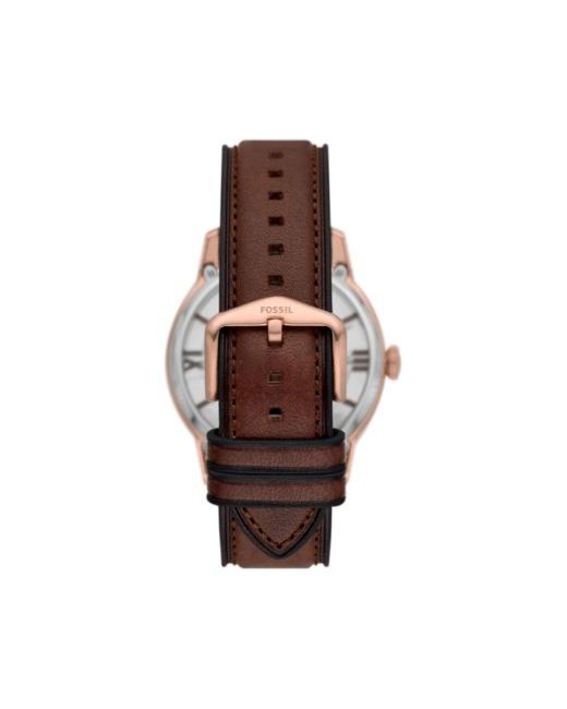 Inspired by vintage watch design, the Townsman Automatic is a casual dress watch with functional sensibility. It features a brown leather strap, a refined rose gold-tone case and an innovative skeleton dial with 3-hand automatic movement that winds as you wear it. Style ME3259.